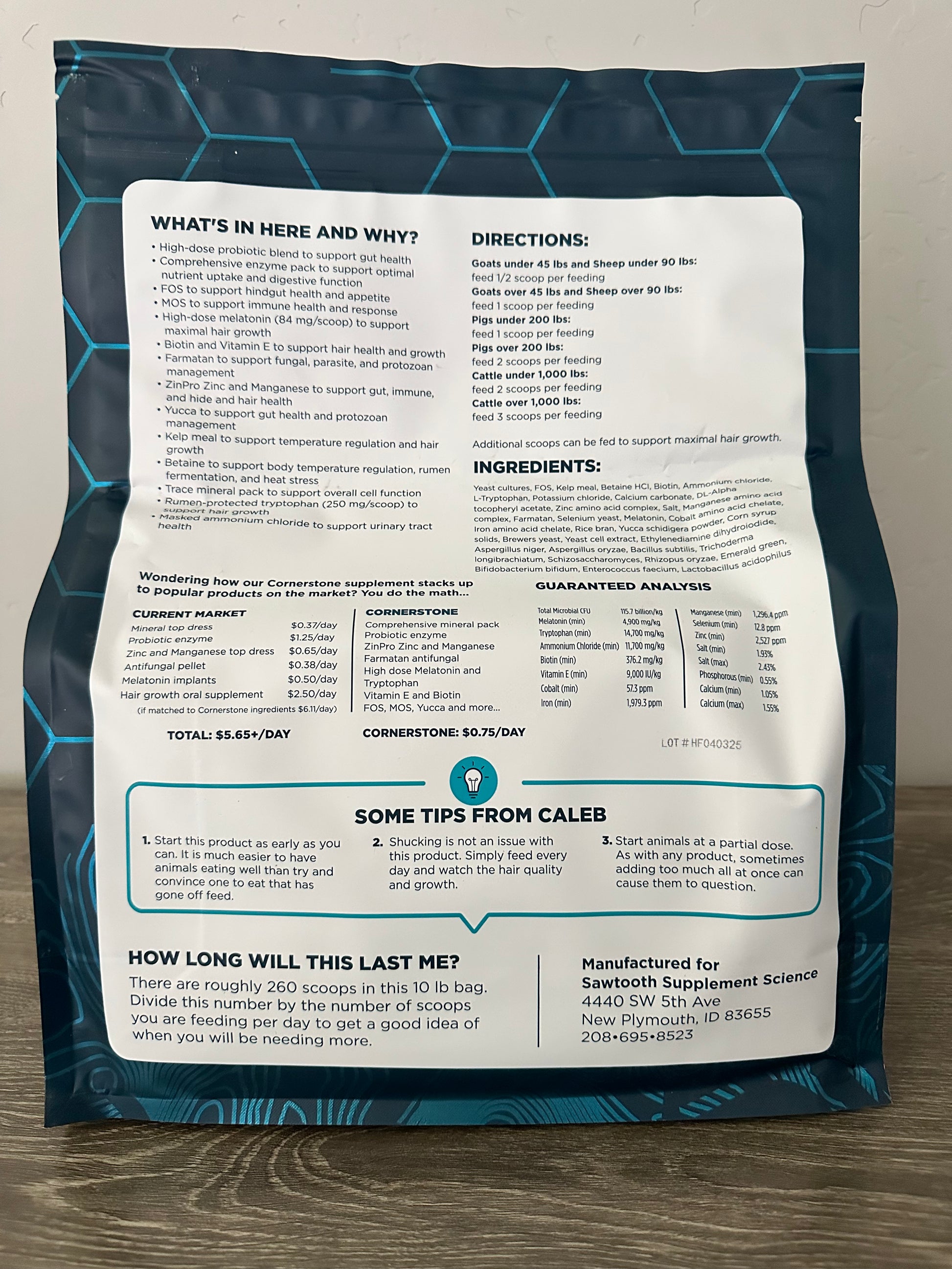 Cornerstone is a comprehensive supplement that will maximize the potential of your animal. We like to call it the "Swiss Army Knife" of supplements because it has A LOT of tools in it to get the job done!